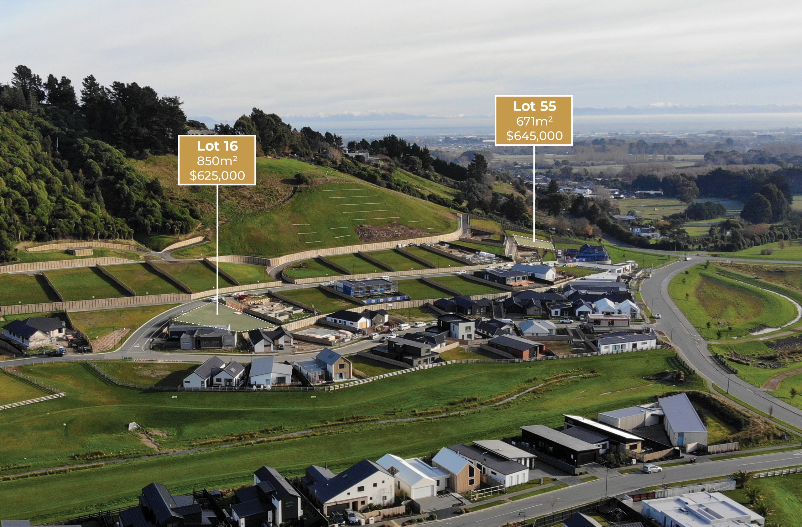 There are currently just 2 sections available for sale in Stage 2B & 2C, Cashmere Estate’s premier stage, with developments complete and sections titled ready for build. Ranging in size from 671 sqm to 850 sqm  and priced from $625,000, these  sections provide stunning views of the surrounding Port Hills and out to the spectacular Southern Alps.